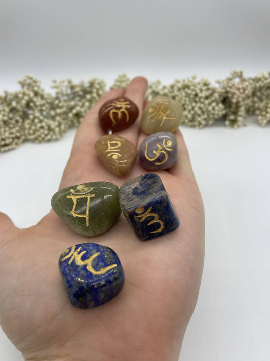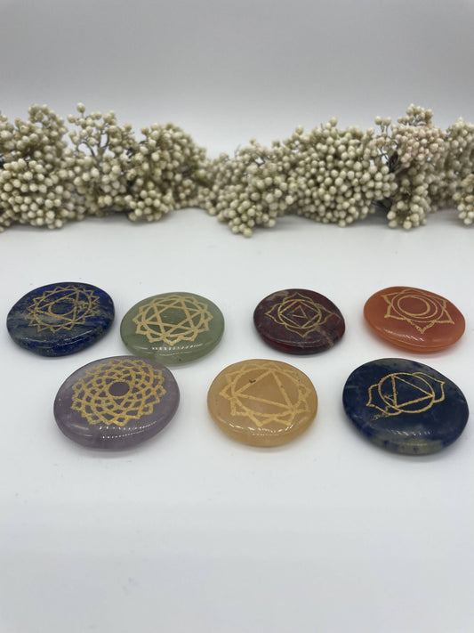 Edelstein Set 7 Chakra Symbolsteine rund