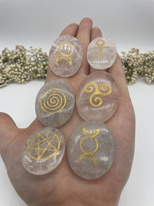Wicca Symbolsteine Bergkristall Set 6 Stück